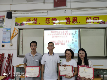 此外,孙玉林、文静、余小杏等老师还分别前往徐闻县梅溪实验学校、徐闻县第五中学、佛山市南海区罗村一中和湛江市经济开发区第一中学,与实习学校有关领导和实习生进行座谈,了解实习工作情况,听取意见、建议,并为实习学校指导老师颁发聘书。