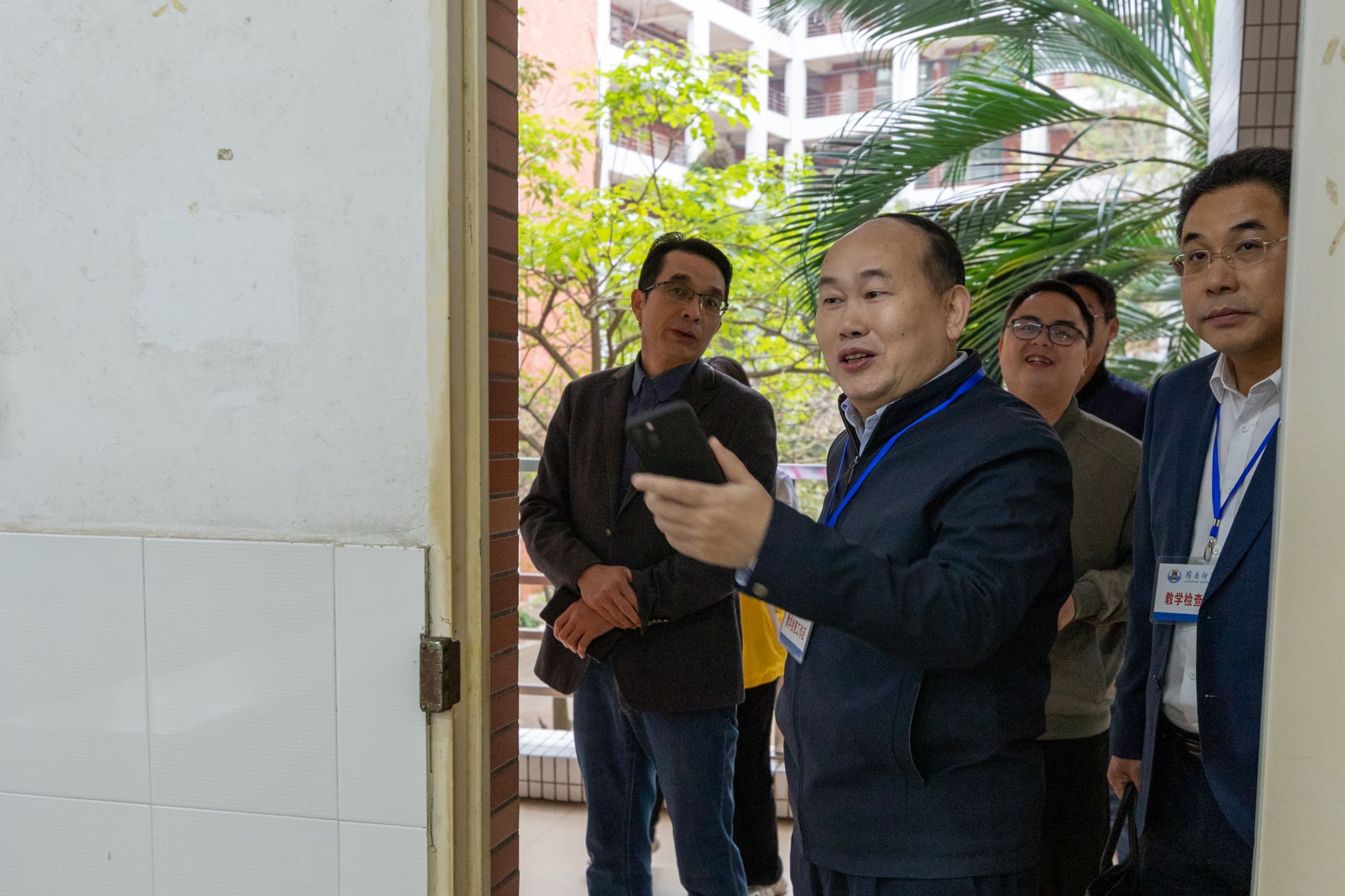 “课堂教学非常重要!提高教学质量的最重要的手段之一就是抓好课堂教学。”当日8:00,学校党委书记兰艳泽带领第一检查组走进第一教学楼,对物理学院、数学学院的各课室进行检查,并对检查中发现的部分教师教态、学生穿拖鞋上课、教室前三排空置等,以及教学铃声、部分教室灯光过暗、投影幕布霉斑、上课期间车辆鸣笛等方面问题提出了指导改进意见。