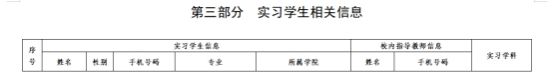 二级学院按分工向对接实习单位反馈《实习工作手册》时,“第三部分实习学生相关信息”须包含我校在该单位实习的所有专业学生信息,不得仅反馈本学院/专业的学生信息。
