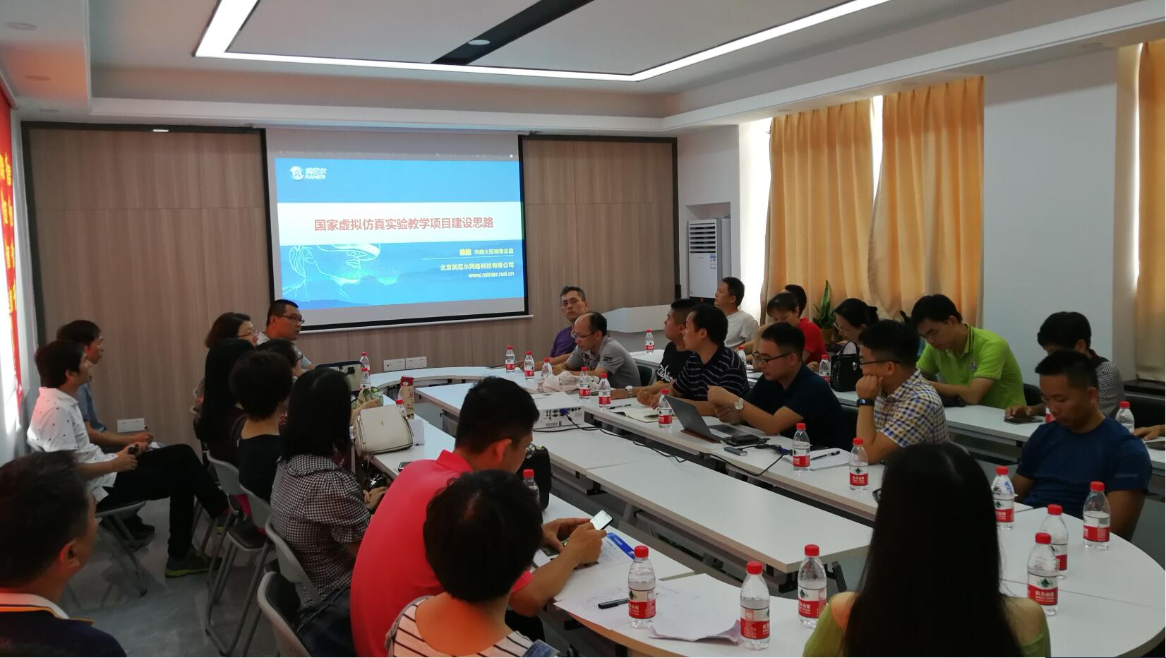 7月9日下午,教师教学发展中心邀请了北京润尼尔网络科技有限公司,华南大区总监徐捷来我校进行国家级虚拟仿真示范性项目政策解读及经验分享。本次交流会由教师教学发展中心主任尹宁伟副处长主持,来自我校各专业有意向申报虚拟仿真实验教学项目的30多位老师到场聆听。