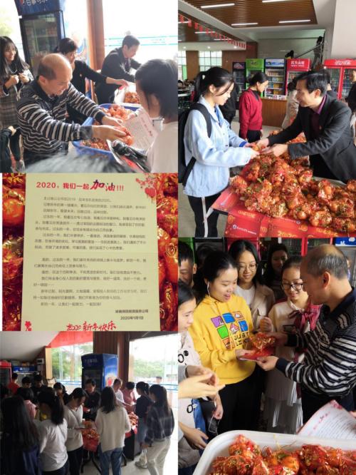 二是支部党员及食堂管理人员为前来就餐的师生共派发2020份新年贺卡及福袋,把一颗颗的糖果放入福袋配上祝福的贺卡,代表服务公司对全体师生满满的祝福!福袋送手中,笑容甜心里!学生们表示活动让大家感受到了新年的喜气和满满的幸福。