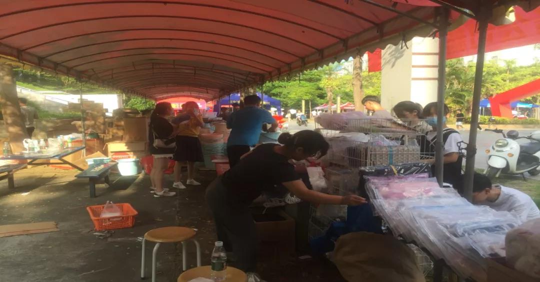 为做好新生服务点的工作,公司党支部充分发挥党员的先锋模范作用,增派党员职工支持超市工作,他们夜晚加班准备商品,第二天白天又在高温闷热的天气下协助新生选购商品,回答问题,挥汗如雨,乐此不疲。