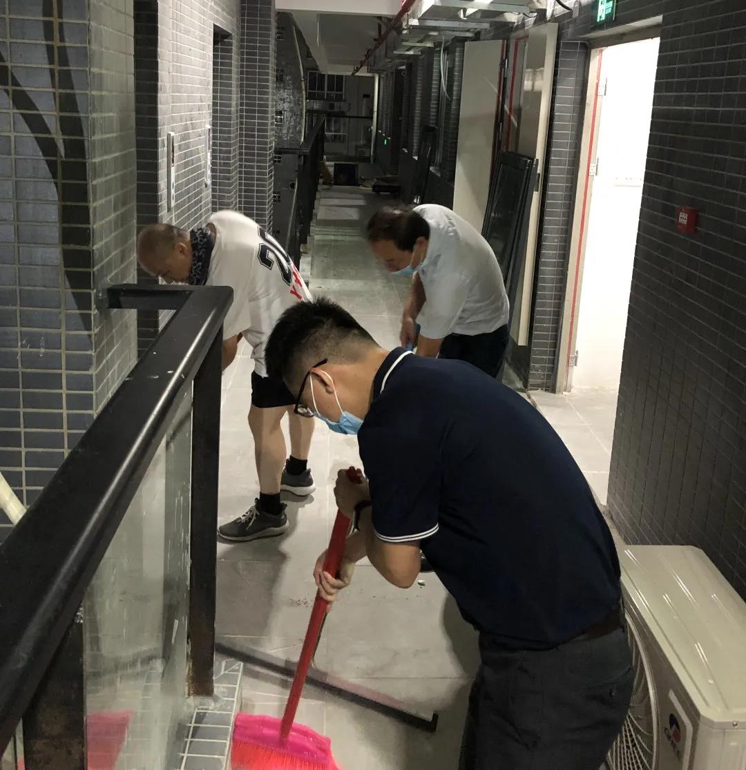 突击打扫新落成学生公寓—确保为新生顺利入住