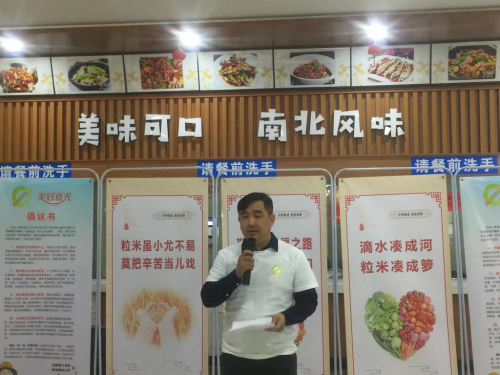 伴随着全国教育系统美“好‘食’光”活动热潮,为引导师生将勤俭节约根植于心、光盘行动成为自觉,教育服务公司12月4日上午在泽园食堂开展了“反对浪费“美好‘食’光”活动。公司领导,支部党员、实体部门负责人及学生代表参加活动。活动现场回顾如下:
