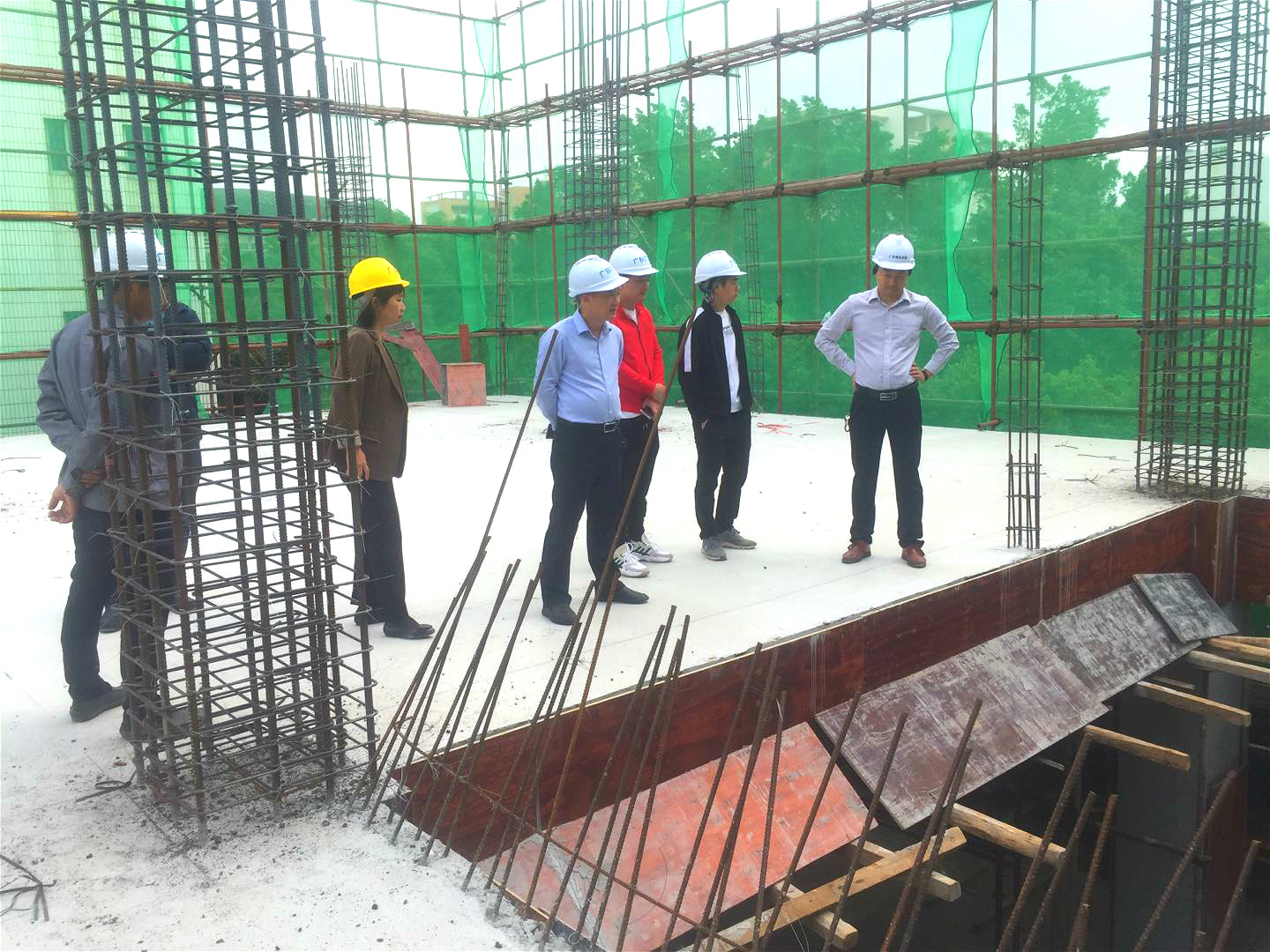 经营班子现场查看了施工情况,听取了项目施工进展情况的汇报。截止目前,一层主体结构已浇筑完成,一层楼板支撑架已拆除完成,模板正在拆除施工。二层柱钢筋绑扎完成并已验收通过,预估3月20号之前完成所有主体结构工程的施工。