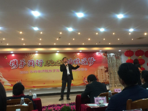 金猪辞旧岁,子鼠踏春来。2020年1月16日下午,岭南师院教育服务公司举行了“携手同行 扬帆逐梦”2020年迎春茶话会。学校领导苏古发副校长、戴黍副校长,公司董事会领导,学校相关部门领导和老师应邀出席晚会。公司全体员工(含退休员工)和部分供应商也在这难忘的日子欢聚一堂,辞旧迎新。