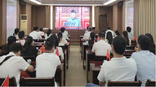 7月1日上午,庆祝中国共产党成立100周年大会在北京天安门广场隆重举行,公司集中组织全体党员、经营实体负责人和职能部门全体人员在公司三楼会议室通过电视直播收看大会盛况,共同见证这一伟大而庄严的时刻。