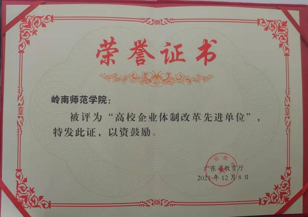 近日,广东省教育厅组织召开2021年国有资产管理业务培训会,会上对2021年国有资产管理工作情况进行了通报奖励。岭南师范学院获评“高校企业体制改革先进单位”,公司总经理凌贤郅代表学校参加培训学习并领奖。