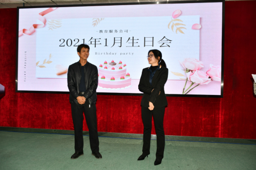 2021年1月7日,公司在本月工作布置会后,特意安排了一次生日会。本月生日的有分别来自纯净水厂、园府酒店的员工,他们默默在岗位上奉献了10年以上。千言万语道不尽的祝福,都不如一句“祝你生日快乐”让人暖心。
