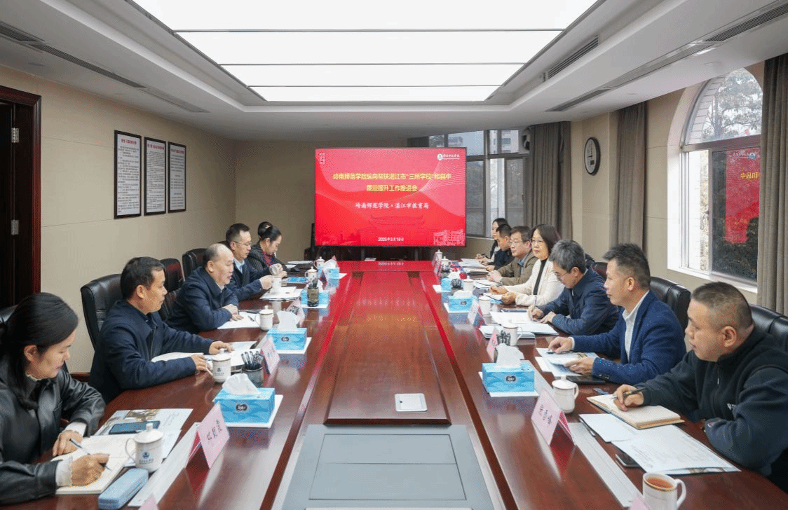 3月19日上午,湛江市教育局党组书记、局长陈升一行莅校进行交流座谈。双方在学校办公楼一号会议室举行了交流座谈,学校校长阳爱民出席会议并讲话,副校长金义富主持会议。
