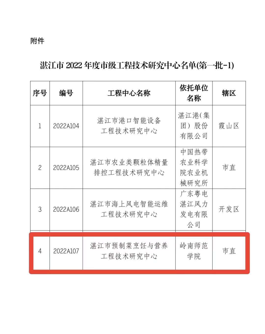 湛江市2022年度市级工程技术研究中心(第一批-1)名单