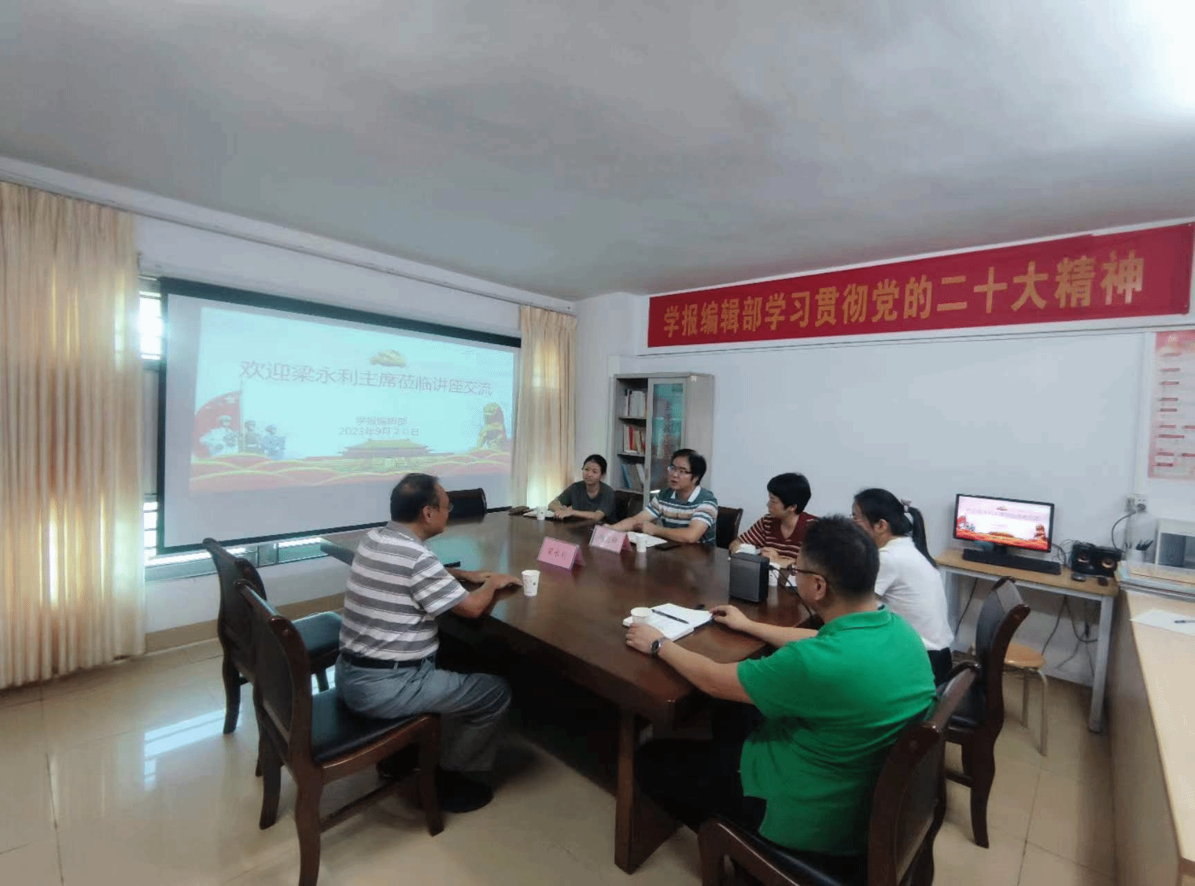 《湛江文学》主编梁永利于9月20日上午莅临学报编辑部交流指导,学报编辑部全体编辑参加会议。梁永利主编分享了从事编辑工作的心得,并就学报编辑工作提出如下建议:一、要把握学术热点和前沿,紧跟学术进展,提升学报的质量和学术价值。二、注重论文的原创性和科学性,加强对稿件的审核与评审,确保学术成果的可靠性和可信度。他还鼓励编辑们积极参与学术会议和研讨活动,提升自己的学术素养。学报编辑们深受启发。