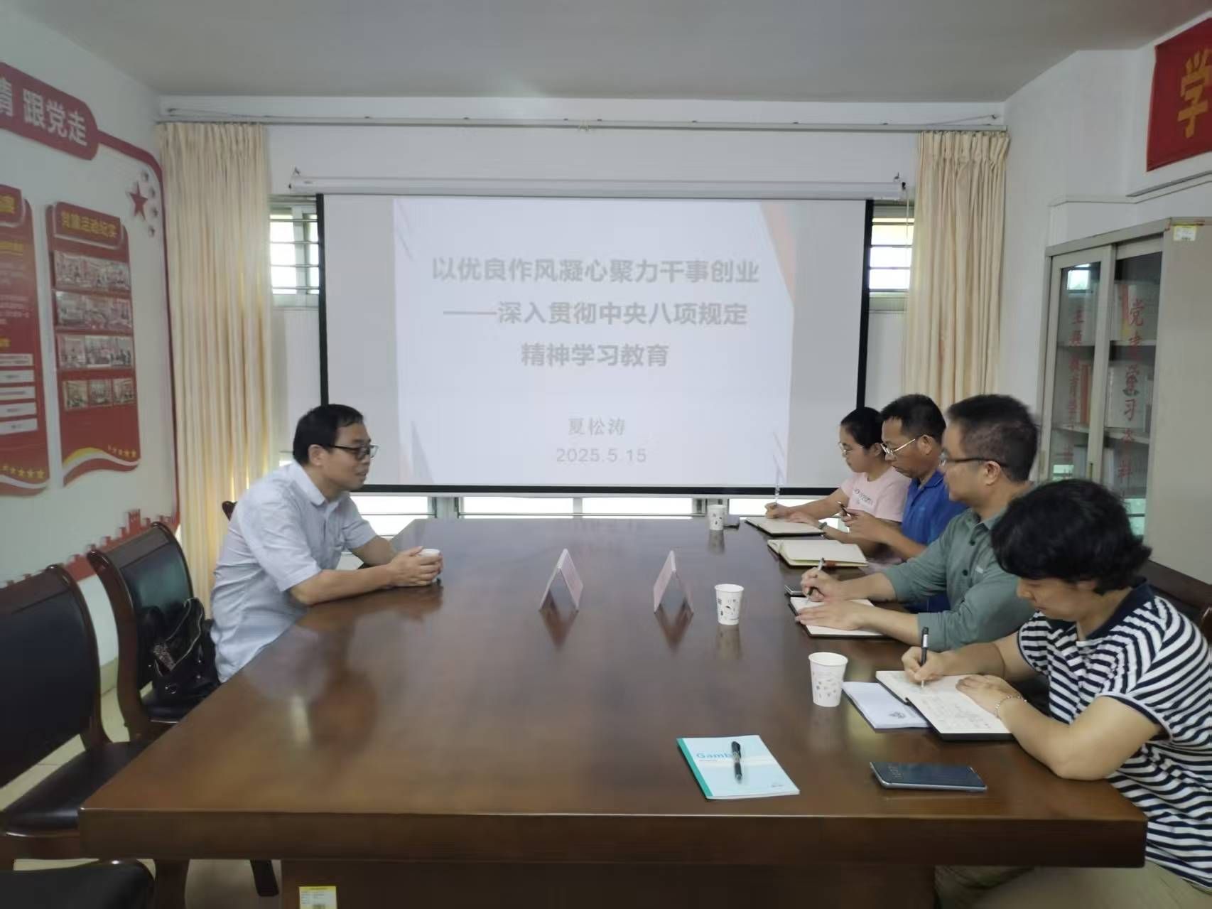 夏松涛院长系统阐述了中央八项规定精神的深刻内涵与时代价值,详细解读了其在改进工作作风、密切联系群众等方面的具体要求。他强调,全体党员要坚持学以致用、知行合一,切实将学习成果转化为推动工作的实际成效,以优良作风凝聚力量、干事创业。