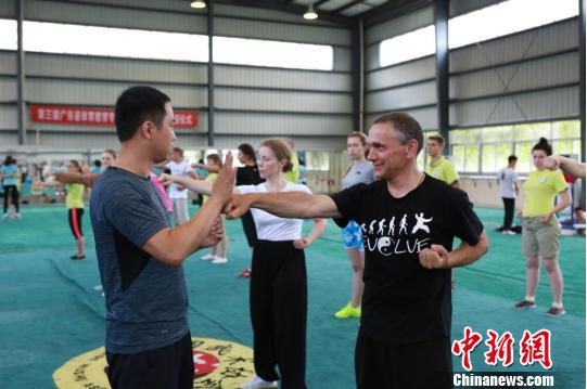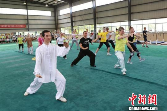 CHINANEWS.COM Zhanjiang, June 4, (Liang Sheng Guan Tianchong) "Master, would you please see if my movements are correct?" On the morning of June 4, 21 Belarusian teachers and students from the "Confucius Classroom" Summer Camp were learning Chinese Tai Chi in the Gymnastics Hall of Lingnan Normal University (LNU) in Guangdong.