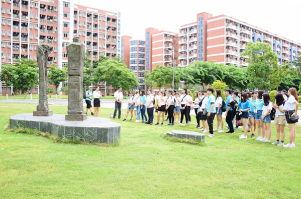 A tree seed brought back from National University of Tainan nine years ago has grown into a leafy forest. In the "CassiaFistulaGarden", teachers and students from both sides of the Taiwan Strait witnessed the deep affection between Zhanjiang and Taiwan universities. Guided by our students, teachers and students from Taiwan visited the campus and stopped to take photos at every place. Zhan Zhijun from the National Taichung University of Education said with emotion: "This campus is amazing, with many places full of traditional cultural atmosphere, such as the antique college square, the Taiwanese artist's ceramic wall Ask Canal, the landscape sculpture Confucius and Lao Tzu, and the centennial normal school memorial tower…… The landscape design and education function have achieved a harmonious coexistence."