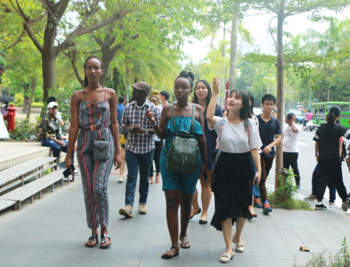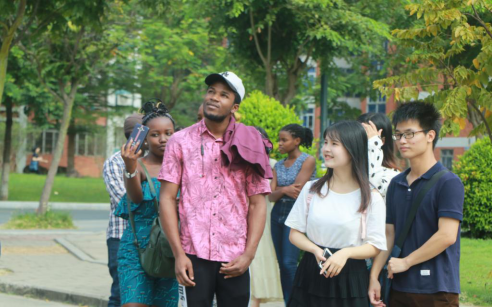 On the morning of October 27, Mr. Zhong from the Office of International Exchange & Cooperation and some students from the School of Foreign Languages led the overseas students to have a pleasant campus tour. Enthusiastic Chinese students introduced the campus landscape and its rich connotation to the overseas students in English.