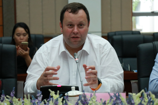 Chris Chang introduced that the University of Portsmouth is a research-oriented comprehensive university, which is composed of five faculties, including Faculty of Business and Law, Faculty of Creative and Cultural Industries, Faculty of Humanities and Social Sciences, Faculty of Science and Faculty of Technology. In terms of discipline setup, the university has an unified management of art, communication, entrepreneurship and innovation, and combines traditional art with new media technologies. Concerning cooperation, Chang attaches great importance to cooperation with Chinese universities and the University of Portsmouth has offices in Beijing and Shanghai. He said that today's exchange meeting is only a start, and they will maintain positive contacts in the future, hoping to cooperate with LNU in the fields of IT, chemistry, law, and biotechnology.