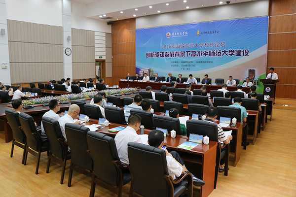 LNU Press Center News: In the context of national strategy to develop “world-class universities and world-class disciplines” and provincial strategy to build “high-level universities and high-level science and engineering universities”, what is the way out of normal universities? On July 4, Lingnan Normal University and Taiwan Normal Education Association co-hosted “2016 Cross-Strait University Presidents Forum”. Fifty presidents from 15 universities on both sides gathered in LNU and talked about the construction of high-level normal universities in the context of innovation-driven development.