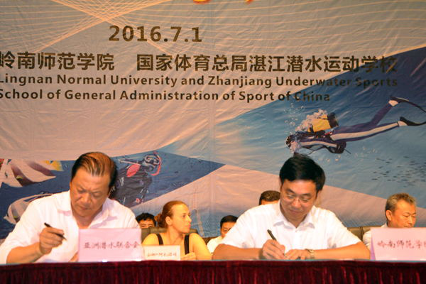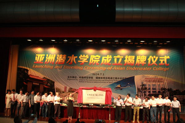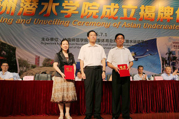 In his remarks, Liu Minggui said the establishment of Asian Underwater College embodies three characteristics: high starting point, new model and gap filler. The college sets out from a high starting point as it is supported by World Underwater Federation, Asian Underwater Federation and General Administration of Sport of China; initiates a new model of talent development featured by integration between sports and education and between cultivation and training, as it builds on in-depth cooperation and innovation-driven coordination with Zhanjiang Diving School of General Administration of Sport of China, a world-class sports school, in the offering of undergraduate programs to draw on each other’s advantages and achieve integrated development; fills the gap, domestically and internationally, of the lack of bachelor degree holders majored at diving, as it is a underwater college devoted to train diving professionals graduating with a bachelor degree in a regular institution of higher learning.