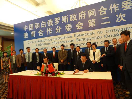 Vice Minister of the Ministry of Education of the PRC Hao Ping and Vice Minister of the Ministry of Education of Belarus Bogush signing the meeting minutes