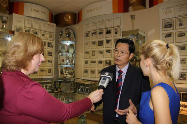 With the stronger momentum of Sino-Belarus friendly cooperation, the opening ceremony of the Confucius Classroom at Belarusian State University of Physical Culture (BSUPC), LNU’s partner school, was held at its auditorium at the noon on November 5. The ceremony was attended by leaders and guests from both countries, including the Belarus’s former vice prime minister and ambassador to China M.A. Tozik, Minister of Sports and Tourism A.E. Samok, Head of the Foreign Affairs Bureau of the Ministry of Education M.A. Rakoff, Secretary-General of the Olympic Committee A.A. Kotov, the First Secretary of the Education Division of Chinese Embassy in Belarus Wang Dajun, Chinese and foreign directors of the Confucius Institutes at Belarusian State University (BSU) , Minsk State Linguistic University (MSLU) and Belarusian National Technical University (BNTU), the LNU delegation led by President Luo Hai’ou and President G.B. Kasachenko of BSU and the whole school. Over 200 people witnessed this historic moment. Belarus State TV Channel 1 and the national radio station made interviews and reports about the ceremony.