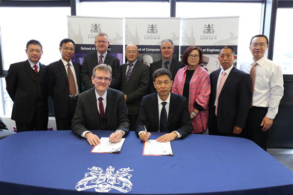 From October 12 to 16, the delegation of Lingnan Normal University (LNU) led by Vice President Shao Lexi paid a visit to Lincoln University for cooperation at the invitation of Prof. Andrew Hunter, Deputy Vice Chancellor of Lincoln University, UK. Other five members of the delegation include Jin Yifu, Director of Scientific Research Office, Feng Zongcai, Deputy Director of Industrial Technology Research Institute, Li Zhong, Dean of the School of Physical Science and Technology, Lin Han, Party Secretary of the School of Information, and Chen Chanjuan, Section Chief of Office of International Exchange & Cooperation. The delegation first visited the School of Chemistry, the School of Computer Science and the School of Engineering of Lincoln University, during which the members made extensive and in-depth exchanges and discussions with leaders of Lincoln University as well as heads of relevant secondary schools concerning cultivation of (master and doctoral) postgraduates, laboratory co-construction, professional cooperation and exchanges of teachers and students. Then the two sides signed a memorandum of cooperation and reached a cooperation framework agreement with respect to unmanned vehicle driving, intelligent robots and industrial materials processing. The visit achieved complete success.