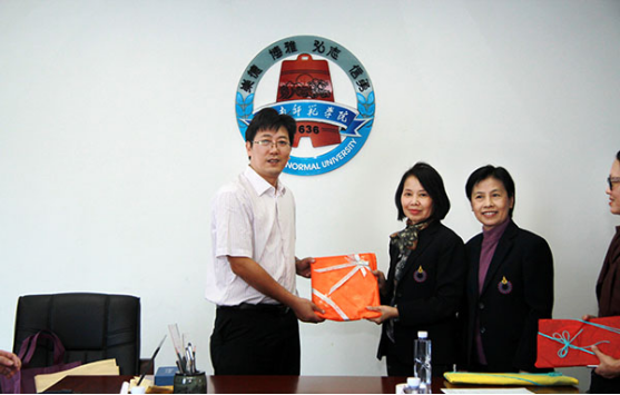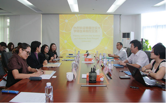 LNU News Center: On the morning of October 20, the delegation of 23 people from Rangsit University (RSU), led by Director Amporn Puapradit and lecturer Nuananong Panmanee of the Department of International Business from the School of Business Administration, and Basic Bilingual Coordinator Prinda Setabundhu and Basic Bilingual lecturer Tonkao Nitasganjananon from the School of Art and Design, visited Lingnan Normal University (LNU). Zheng Zhijun, Deputy Director of the Office of International Exchange & Cooperation, Qiao Zhiqiang, Deputy Dean of the School of Fine Arts and Ms. Cheng Weijie from the Office of International Exchange & Cooperation had a meeting with Thai guests in the No. 2 Conference Room of the School Administration Building.