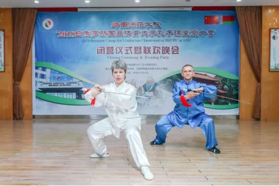 The Belarusian friends played Tai Chi Sword featuring inflexibility and yielding, which represented the concept of Wu Xing (five elements of significant gravity) and Ba Gua (eight trigram) and the wisdom of ancient China.
