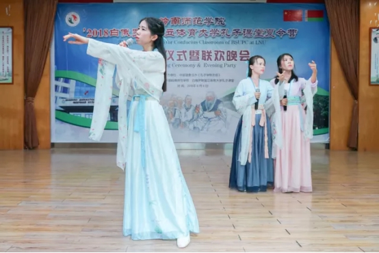 Typhoon brought a refreshing and cooling feeling to Zhanjiang in May while Belarusian friends brought us the sincerest friendship. On the evening of June 6, the Closing Ceremony and Evening Party of the 2018 Summer Camp for Confucius Classroom of Belarusian State University of Physical Culture (BSUPC) at Lingnan Normal University (LNU) were held at Room 420, Hongyuan.