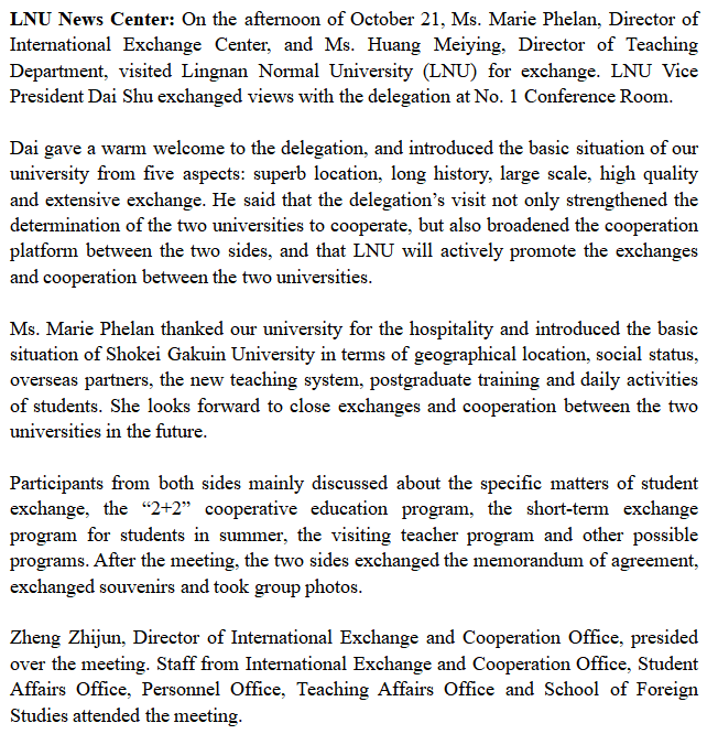 Delegation from Japan’s Shokei Gakuin University Visits LNU