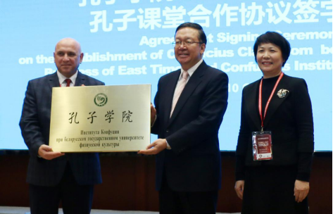 “You’ve run the Confucius Classroom well and have made it characteristic.” When shaking hands with Lan Yanze, Tian Xuejun encouraged continued cultural exchanges between China and Belarus to make the Confucius Institute better.