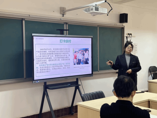 选拔过程中,三位教师分别展示了扎实的教学基本功和独特的教学风采。罗成燕老师以《习近平新时代中国特色社会主义思想概论》第十二章第二节“绿水青山就是金山银山”为主题,通过了解绿水青山就是金山银山关系的发展变迁史,理解绿水青山就是金山银山的关系,深入阐述了绿色发展理念的重要性和实践路径。龙琪秀老师讲授了《马克思主义原理》课第一章第二节“否定之否定规律”,通过生动的AI教学案例和深入浅出的讲解,将抽象的哲学原理清晰地呈现给大家,引导大家深刻理解事物联系和发展的基本规律。彭东丽老师则围绕《习近平新时代中国特色社会主义思想概论》第一章第一节,“中国特色社会主义是历史和人民的选择”展开讲授,以丰富的历史资料和严谨的逻辑论证,生动诠释了中国特色社会主义道路的必然性和正确性。