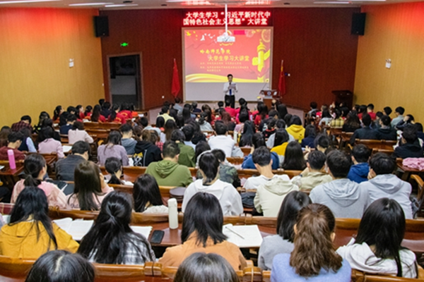 学校党委宣传部、马克思主义学院为推进习近平新时代中国特色社会主义思想深入人心、落地生根,率先尝试在概论课教学中开设大学生学习习近平新时代中国特色社会主义思想大讲堂,打造宣讲+师生共建学习团队模式,让大学生走上讲坛,用带有青春气息的特色宣讲,传播党的理论和政策。