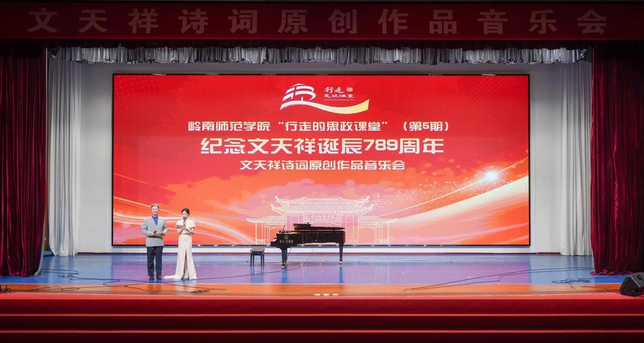 6月6日晚,岭南师范学院音乐厅内弦音激荡,一曲融合埙、箫、古筝与钢琴交响的《酹江月和友驿中言别》缓缓流淌。这场以“纪念文天祥诞辰789周年”为主题的文天祥诗词原创作品音乐会,是该校举办至第五期的“行走的思政课堂”的又一创举。11名校外艺术家和校音舞学院师生合作,融合声乐、器乐与诗词立体演绎南宋民族英雄的丹心浩气,为中华优秀传统文化的创造性转化和创新性发展写下生动注脚。