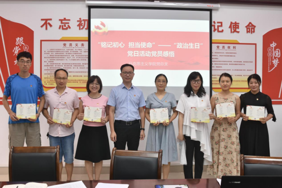 为庆祝建党一百周年,6月24日下午,马克思主义学院党总支部举办了一场“铭记初心 担当使命”——“政治生日”主题党日活动,以谈感悟、颁纪念卡、上党课、重温入党誓词的形式迎接党的第100个生日。党总支书记练有扬出席活动并做讲话、院长何增光,副院长施保国,学院党员教师参与本次活动,副院长夏松涛主持本次党日活动。