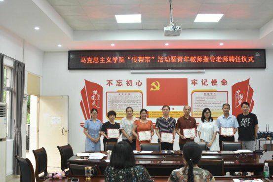 为充分发挥骨干教师“传帮带”作用,促进青年教师成长发展。6月24日下午,马克思主义学院在会议室开展了“传帮带”活动暨青年教师指导老师聘任仪式,学院全体教师参加,夏松涛副院长主持。
