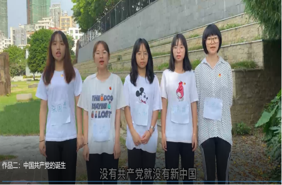 微电影展示作品《中国共产党的诞生》由伊丽娜老师指导,法政学院2020级思想政治教育专业的伍雯娜、吴海霞、林倩儿、陈晓韵、李铭芬、何美仪等同学制作完成。该作品讲述了从巴黎和会中国代表拒绝在合约上签字到“南陈北李,相约建党”以及革命英雄为共产主义信仰而奋斗的党史故事,回顾了中国共产党成立的艰辛历程,让同学们对“没有共产党就没有新中国”这句话有了更深切的感受。