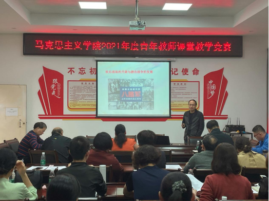 为进一步提升我院青年教师教学能力和水平,促进青年教师专业发展,努力锻造一支师德高尚、理念先进、教学设计优、教学效果好、教学能力强的专业教师队伍,根据岭南师范学院《关于举办2021年度青年教师课堂教学竞赛的通知》(岭师教发评〔2021〕139号)要求,2021年11月11日下午,马克思主义学院在院会议室举办了2021年度青年教师课堂教学竞赛。此次竞赛由学院副院长施保国教授主持,院长何增光、副院长夏松涛教授,学院全体老师参加现场观摩。竞赛内容由参赛教师自主选定所授课程20分钟的教学内容进行教学设计,撰写教案,现场授课。竞赛方式是评委老师现场听课,对参赛教师的现场授课与教学课件、教学设计(教案)等进行综合评审并打分。