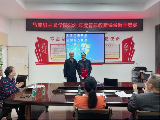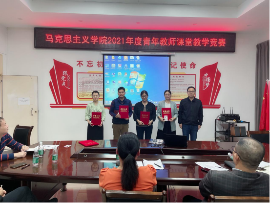 最后,学院领导对获得一、二等奖的教师进行了颁奖表彰。一直以来,马克思主义学院都把青年教师课堂教学竞赛作为促进教师学习交流,提升教师教学能力和展示教学风采的重要平台,营造了“以赛促教、以赛促改”的教学氛围,为学院教学质量的不断提升,“六个课堂”打造和“金课”打磨奠定了坚实基础。