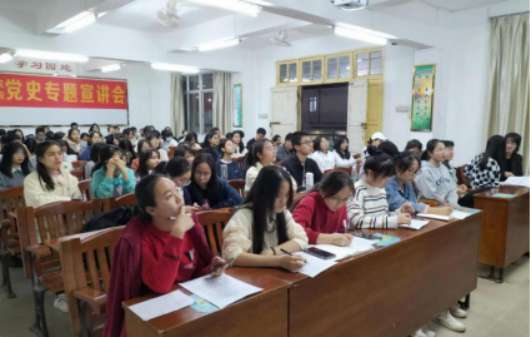 为庆祝建党百年,激发大学生的爱国主义精神,岭南师范学院职业教育学院2019级小学全科教育一、二班的学生在完成以“中国精神”为主题的实践活动后,在马克思主义学院林兴副教授指导下,于2021年12月2日开展以“弘扬中国精神 争做时代青年”为主题的《思想道德与法治》课程实践汇演活动。