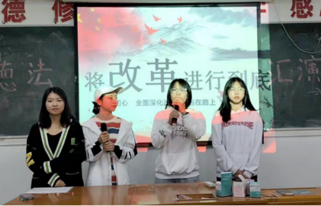 活动期间,学生演绎了小品《改革开放的那些事》,展示出改革开放以来人民不断增强的获得感、幸福感、安全感;齐声朗诵诗歌、观看电影,通过绘画刻纸的形式回顾抗美援朝的峥嵘岁月;以演讲、汇报的形式为现场师生讲述了伟大的建党精神、长征精神、延安精神、中国女排精神和抗疫精神;分享了走访建库开河亲历者的心得体会。