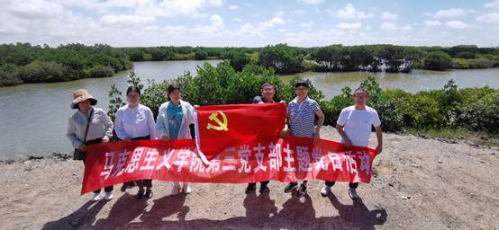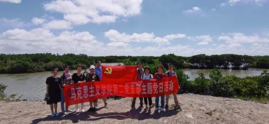 为深入学习贯彻习近平生态文明思想、广东省第十三次党代会精神,迎接党的二十大胜利召开,6月23日,马克思主义学院第二、三党支部联合“红树林精神与生态文明研究所”开展参观调研麻章红树林党日活动。马院党总支委员、副院长施保国带队,支部书记陈跃瀚与党员教师一行20多人参加活动,这次活动主要目的是加大保护红树林生态文明建设的宣传力度,弘扬湛江红树林精神。