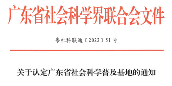《关于认定广东省社会科学普及基地的通知》文件