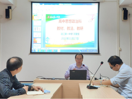 项爱佳以《高中思想政治科教材、教法、教研》为题,结合自己多年的课堂教学实践和教育教学改革研究经验,从“教材:传承与发展;教法:传统与现代;教研:个人与集体”三方面具体阐述了高中思想政治课教学改革创新研究的做法,梳理了各年级的教学内容和教学要求,明确了教材、教法和教研的关系。项爱佳指出,高中与大学的课程标准不同,教法也不一样。高中教师要全面深入熟悉、掌握课程新标准和本学段、本学科教材,梳理教材的知识结构,让整套教材在教师心中形成一个连贯的有机整体。