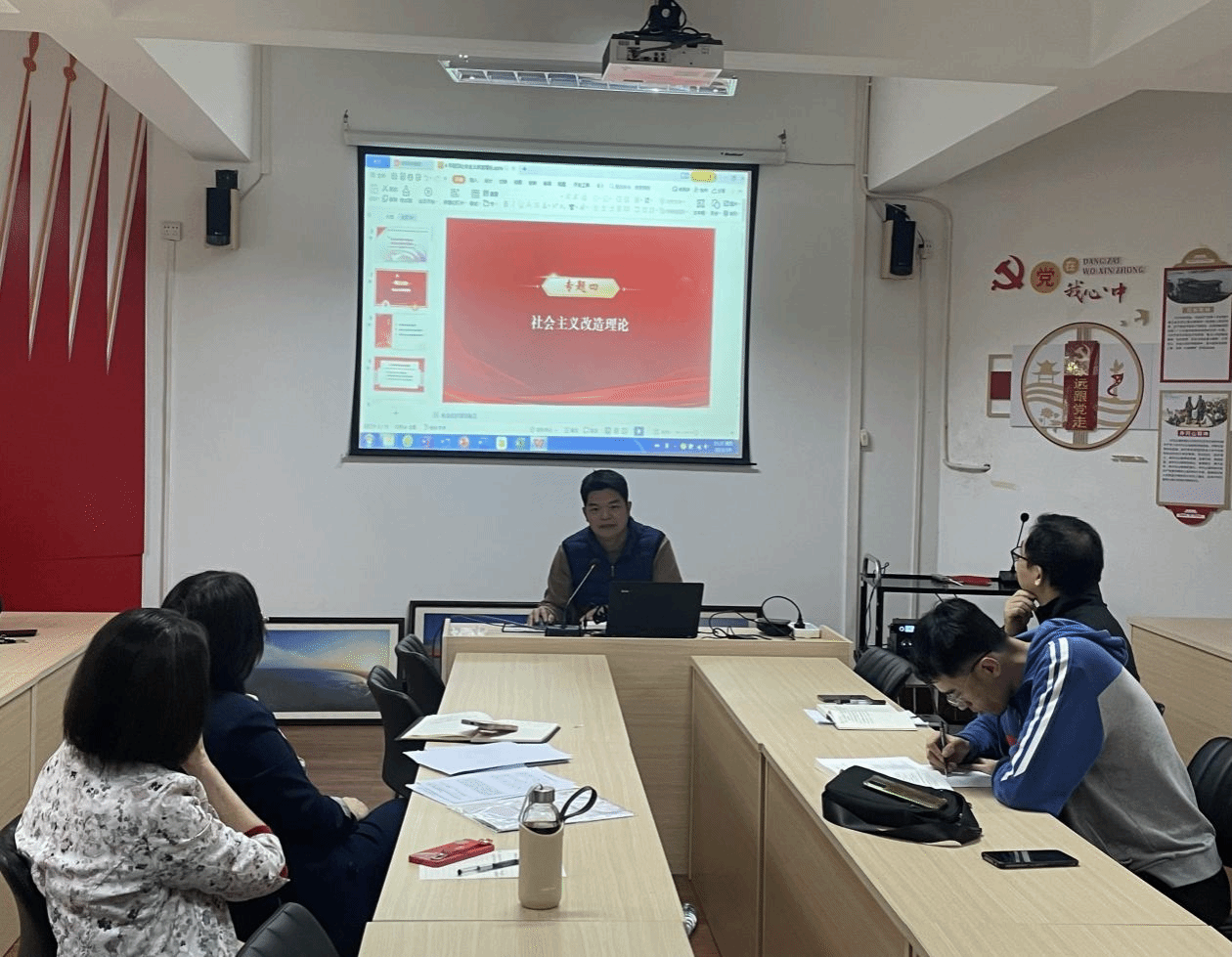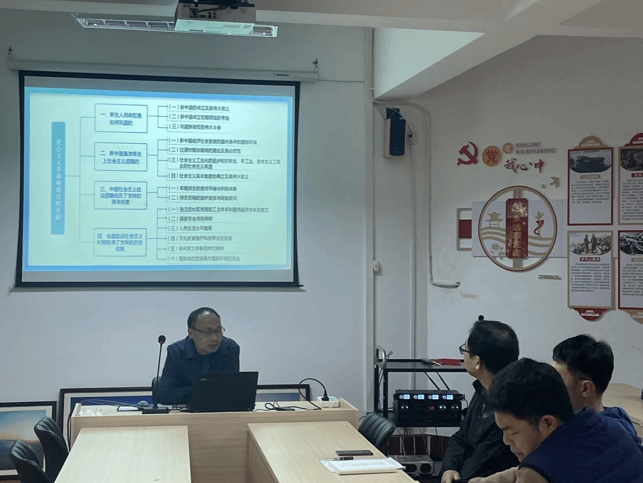 《中国近现代史纲要》课教研室贺永田博士、邢恩源博士,《毛泽东思想和中国特色社会主义理论体系概论》课教研室朱培源博士、王洪东博士分别就两门课程具体章节交叉内容的处理,交流了各自的看法,分享了各自的教学经验。他们认为,《中国近现代史纲要》课侧重讲史实,《毛泽东思想和中国特色社会主义理论体系概论》课侧重讲道理,教学中既要处理好两门课的相互关系,做到相互衔接,又要把握好两门课的侧重点,发挥各自的育人功能。其他老师踊跃发言,谈了自己的心得体会,认为活动很有意义,深受启发。活动气氛热烈,轻松愉快。