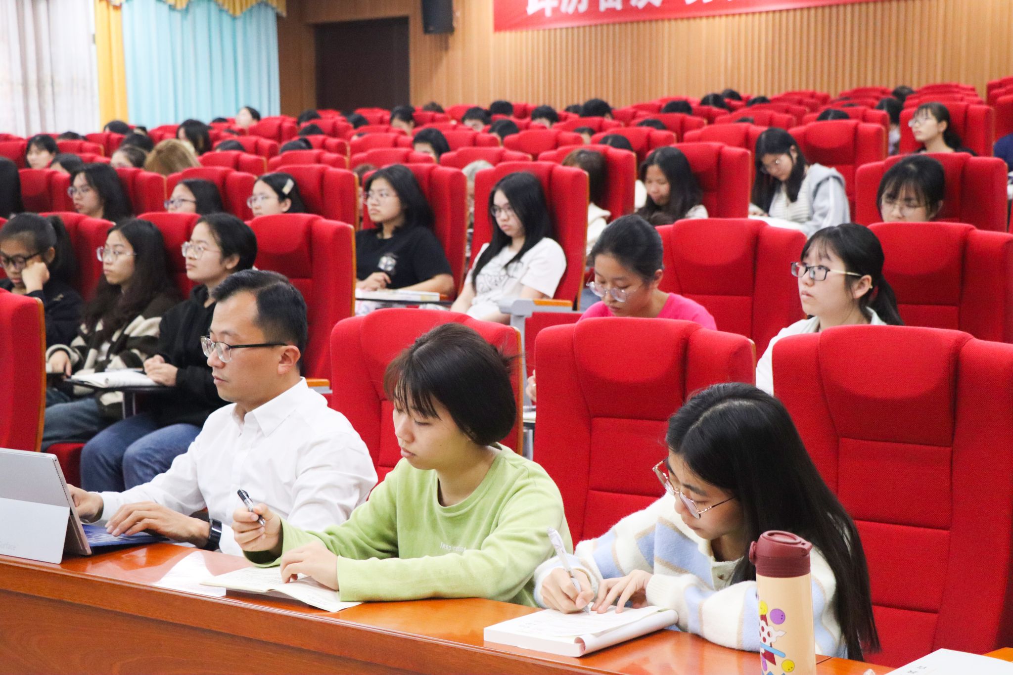 “岭师肇始于师范、发展于师范、壮大于师范,传承着‘经师人师、言教身教、文运宏开、泽被后世’的师道文化精神。”兰艳泽回顾了学校经历了从书院、学堂到学校的改制,实现了从中师、师专到师院的飞跃的历程,深入阐述了由书院精神、革命精神、校训精神传承发展的岭师人精神谱系。兰艳泽通过介绍被评为全国模范教师的优秀校友、海岛教育的感人故事、援藏援疆的支教事迹,生动展现了新时代岭师人的追求卓越、心怀大爱、勇于奉献的精神内涵。她勉励同学们传承重德尊师、严谨治学、勇于创新、戒恶扬善的书院精神,传承谭平山、黄学增、黄其炜、唐才猷等革命先辈的精神品质,发扬崇德、博雅、弘志、信勇的校训精神和追求卓越、心怀大爱、勇于奉献的新时代岭师精神,争做新时代的好园丁。