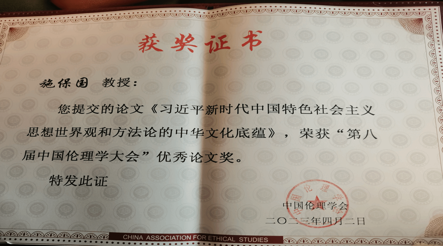 施保国教授热爱科研,成果丰硕。此次论文获奖既是学术界对施保国教授的学术水平的高度认可,也是马克思主义学院通过“有组织的科研”加强学科建设提升学术影响力所取得的重要成果。
