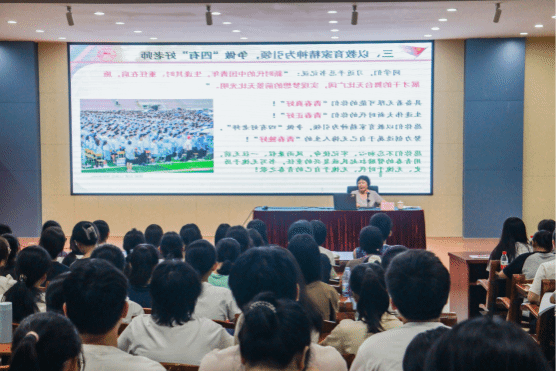 “愿你们不忘初心、牢记使命,风雨兼程、一往无前,用青春的臂膀扛起民族复兴的重任,书写无愧于历史、无愧于时代、无愧于自己的青春之歌!”兰艳泽勉励同学们要以教育家精神为引领,争做“四有”好老师,努力创造属于自己无悔人生的“青春独好”。一要坚定理想信念,从学校红色基因的革命精神和百年师范的书院精神中汲取力量;二要陶冶道德情操,树立对教师职业的清晰认识和定位,坚持“学习行思”师德养成路径,葆有强烈的奉献意识和奉献精神;三要涵养扎实学识,对标传道授业解惑的职业要求,掌握精深的学科知识、灵活的教育教学知识和广博的文化知识,以学生为中心,因材施教,熟练掌握教育教学新理念新技术,实现个性化的人才培养;四要勤修仁爱之心,崇德敬业、勤学苦练,用爱培育爱,用心感化心,用大爱书写“躬耕教坛、强国有我”的教育人生。