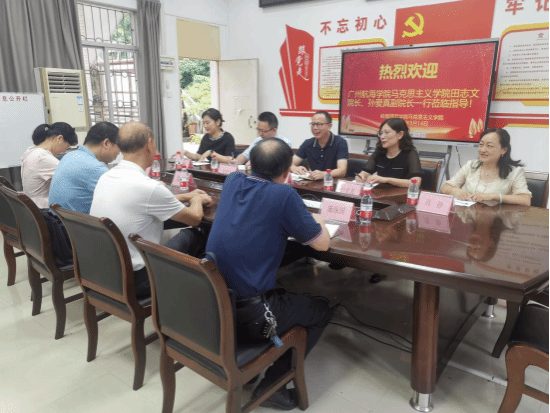 何增光代表学院对田志文一行的到来表示热烈欢迎,并简要介绍了我校马克思主义学院管理、发展历程和思政课改革创新等相关工作。田志文就学院发展状况、思政课建设等进行了介绍。接着,双方分别就党建工作、教学创新、科研工作、文化建设等内容展开热烈讨论,对加强和改进课程思政建设、推进教学改革、科研工作、党建工作和师资队伍建设等内容进行了深入交流和沟通,希望进一步加强与广州航海学院马克思主义学院的紧密联系、交流互动,继续用好、建好现有平台,用好“大思政课”,进一步学深悟透习近平新时代中国特色社会主义思想,对标对表思政课改革创新的“八个相统一”要求,协同打造“六个课堂”。何增光指出,天下马院是一家,希望以后大家借助交流合作机遇,大力推进学科建设、教学改革创新,用好用活区域特色优势资源,上好特色思政课。