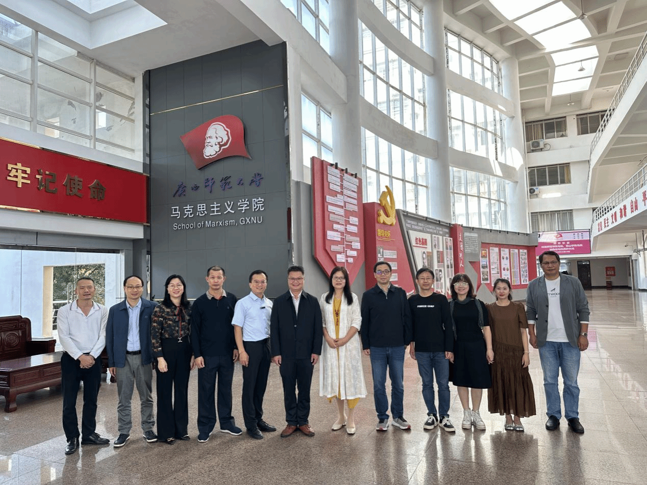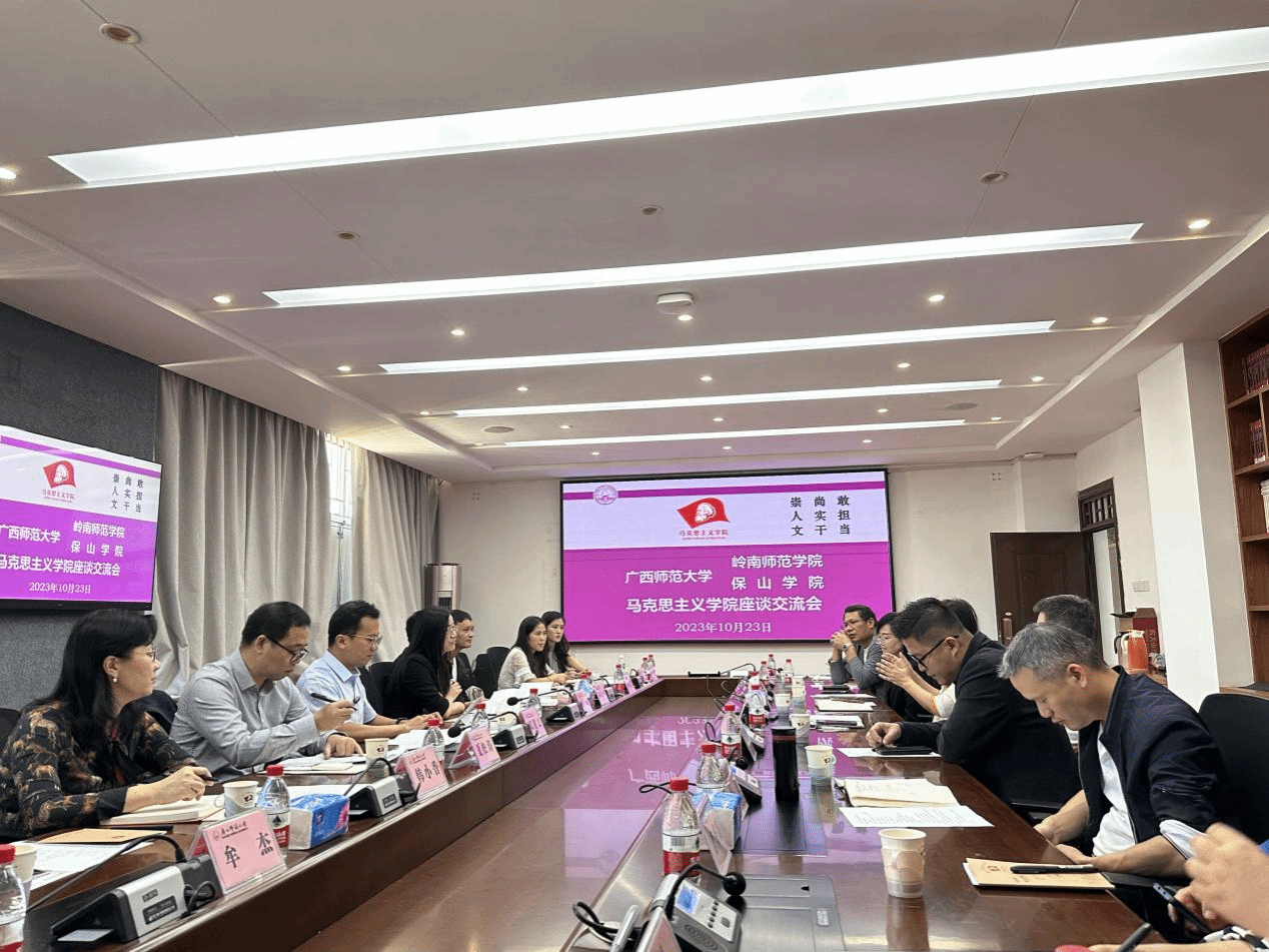 10月23日上午,我院党总支书记邓倩文、副院长夏松涛等一行八人赴广西师范大学马克思主义学院,与广西师范大学马院、保山学院马院围绕学院党建、思政课教学改革、教师队伍建设等做法与经验开展调研交流。广西师范大学马克思主义学院党委主要领导、教研室主任等参加座谈会,学院党委书记陈国华主持座谈会。